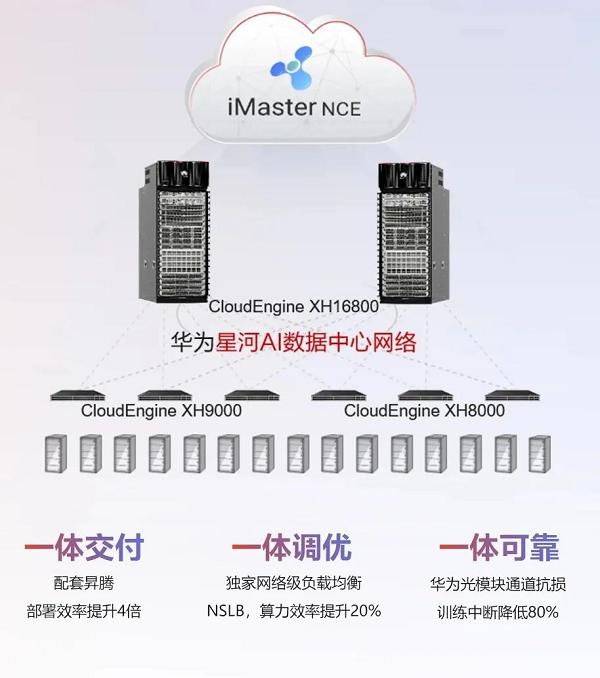 在数据中心网络,AI大模型已经进入了千行万企的生产系统。银行的投资分析,药厂的制药工艺,井下作业的异物识别等,都可以通过AI大模型实现创收提效。但是AI智算中心的建设十分昂贵,AI训练偶发的大象流极易导致网络负载严重不均,整网吞吐仅50%,严重制约了算力的释放,这也驱动了面向智能计算的数据中心网络升级。华为推出的星河AI数据中心网络,通过独家网络级负载均衡NSLB算法提升网络有效吞吐高达98%,AI训练效率提升20%;华为光模块通道抗损技术,实现训练中断降低80%。